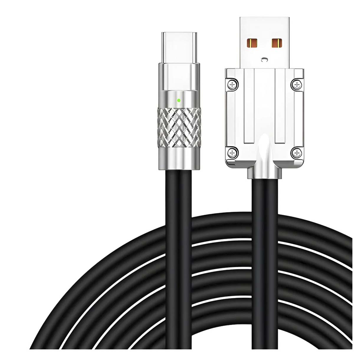Cabo Usb C Tipo C Turbo Metal Silicone 120w 5A Flexive Preto