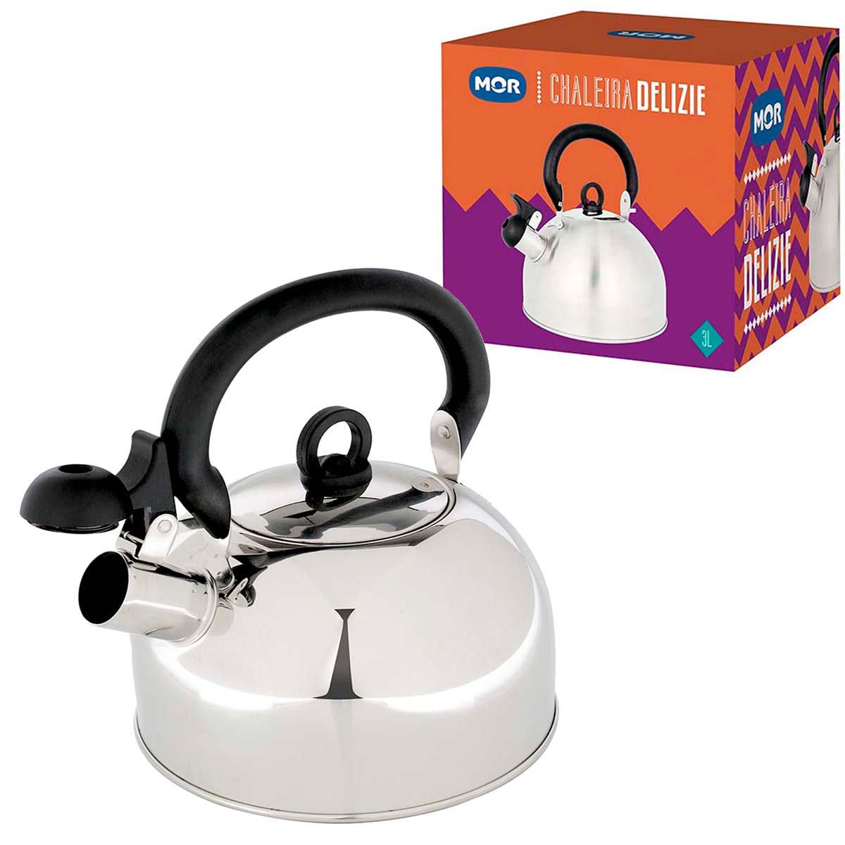 Design moderno, qualidade e eficiência são características das novas chaleiras Mor. Com sistema de aviso sonoro de fervura na tampa, ficou mais prático esquentar sua água. Desenvolvidas em baquelite, uma resina sintética que não conduz calor, proporcionam maior segurança, evitando queimaduras. As chaleiras da linha Delizie foram desenvolvidas em três códigos diferentes para atender a todos os gostos. Com capacidade para 2L, 2,5L e 3L, são encontradas na cor prata.