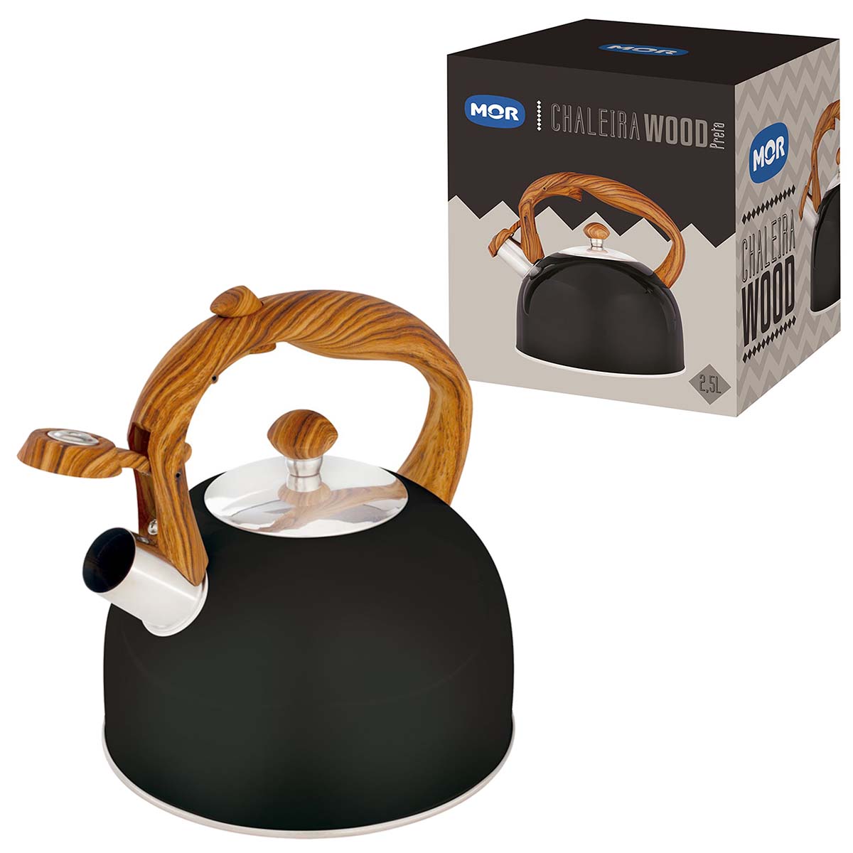 Chaleira Wood 2,5 Litros Preta Em Aço Inoxidável Mor Madeira
