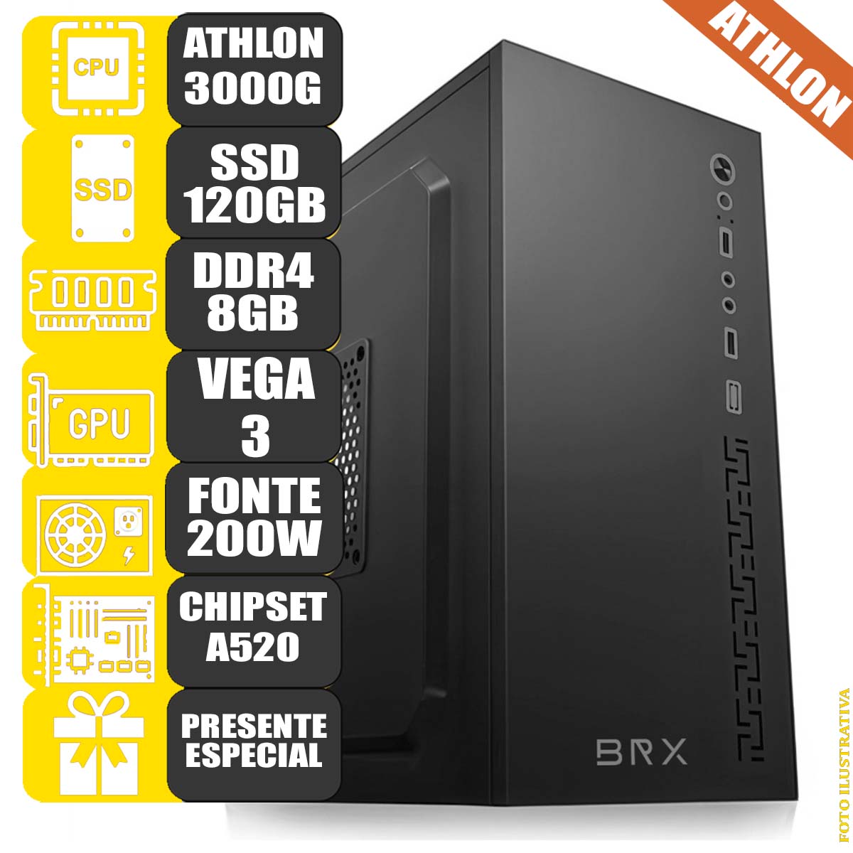 - **Processador:** AMD Athlon 3000G, 3.5 GHz, 2 Núcleos, 4 Threads, AM4
