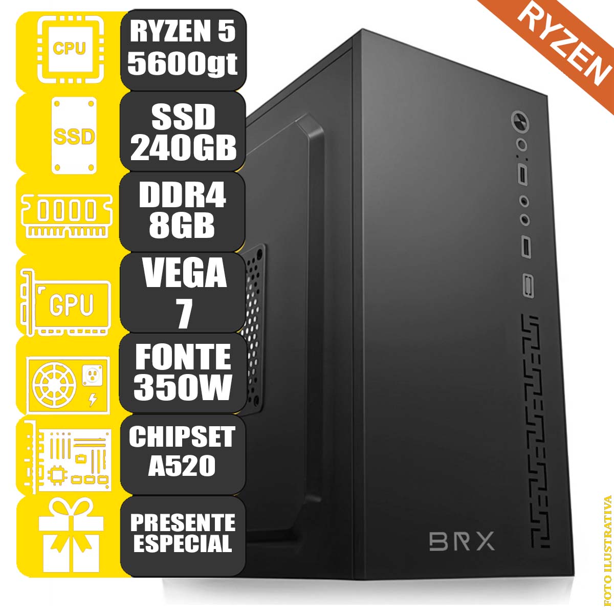 - **Processador:** AMD Ryzen 5 5600GT, 3.6 GHz (4.6GHz Max Turbo), Cache 4MB, 6 Núcleos, 12 Threads, AM4