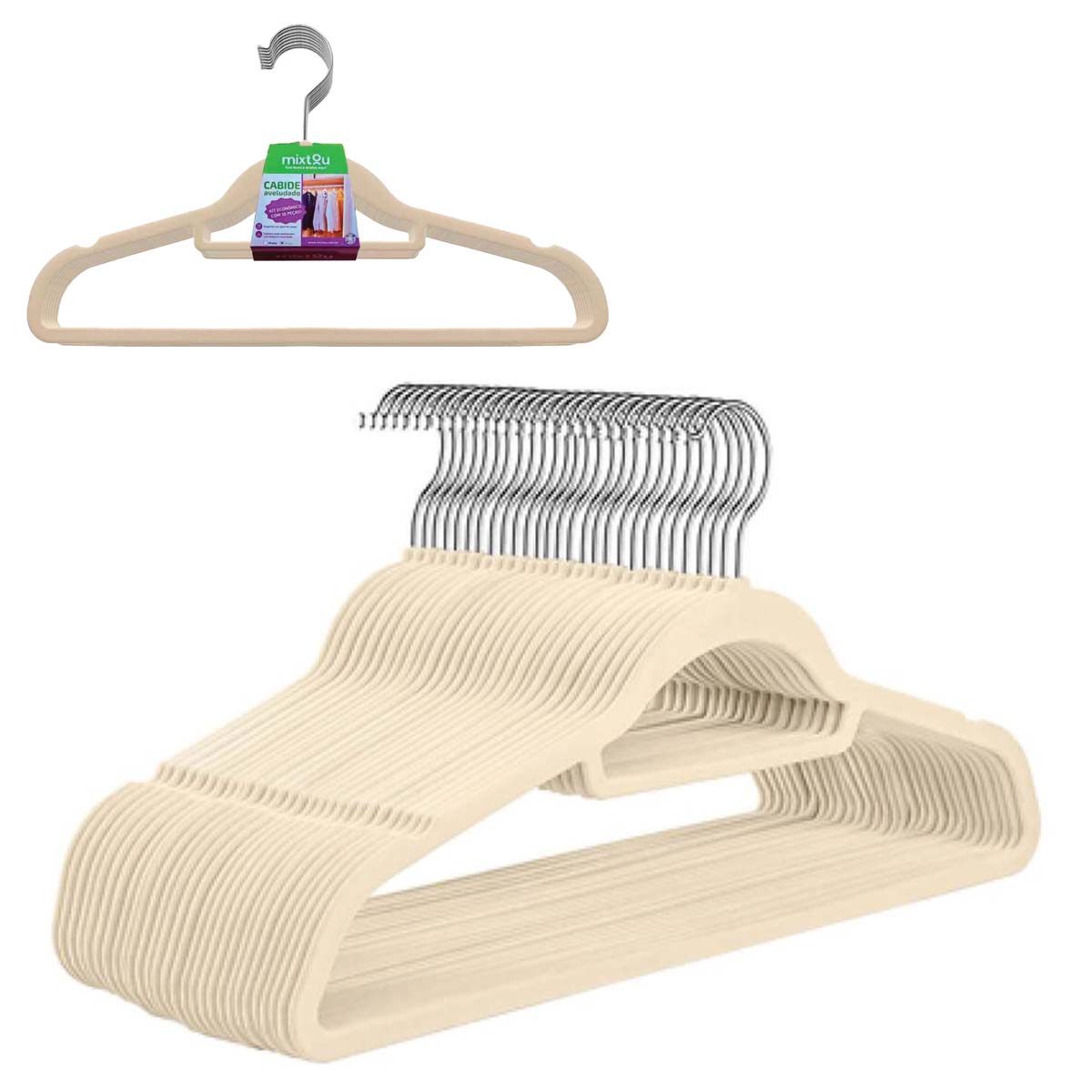 Kit 10 Cabides Revestido Em Veludo Leve Antideslizante Bege
