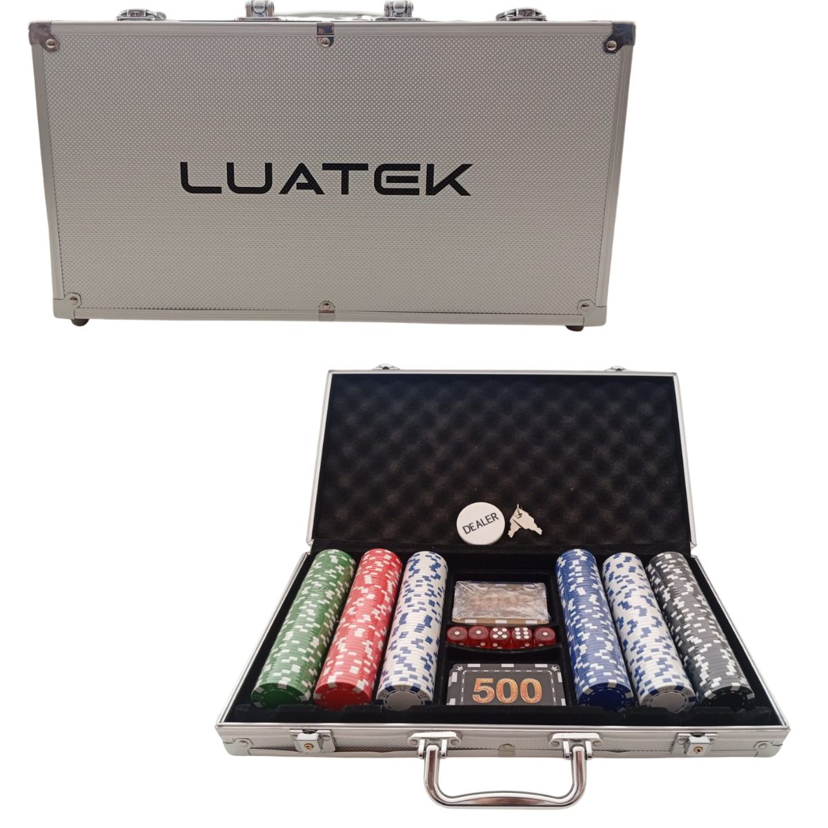 Um grande diferencial para quem quer impressionar com bom gosto e sofisticação.Descrição: Tudo isso em um kit de Poker definitivo onde inclui:- 2 baralhos de cartas de jogar- 5 dados de cor vermelha- Acompanha 2 chaves para tranca da maleta- Cada chip pesa 11,50 gramas aproximadamente - 1 linda maleta de alumínio resistente Possui chips de cor e quantidade- 50 pç vermelho- 50 pç branco- 50 pç azul- 50 pç verde- 50 pç preto- 50 pç ficha ( cada maleta possui 2 tubos com cores iguais)- Produto novoObs: cada maleta possui 2 tubos com cores iguais