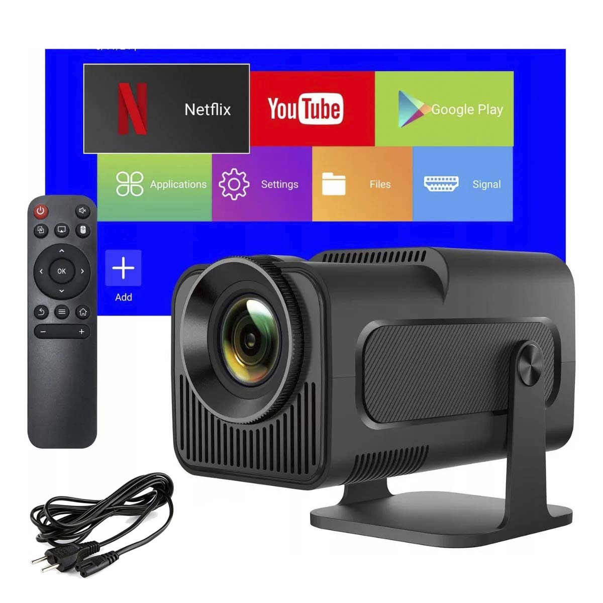 -O App Store Projector é uma combinação de um projetor tradicional e um sistema operacional Android 11 TV box