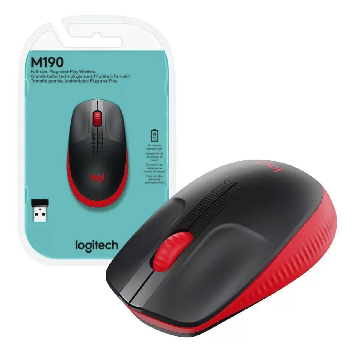 Mouse Sem Fio Wireless Logitech M190vm Vermelho Ergonômico