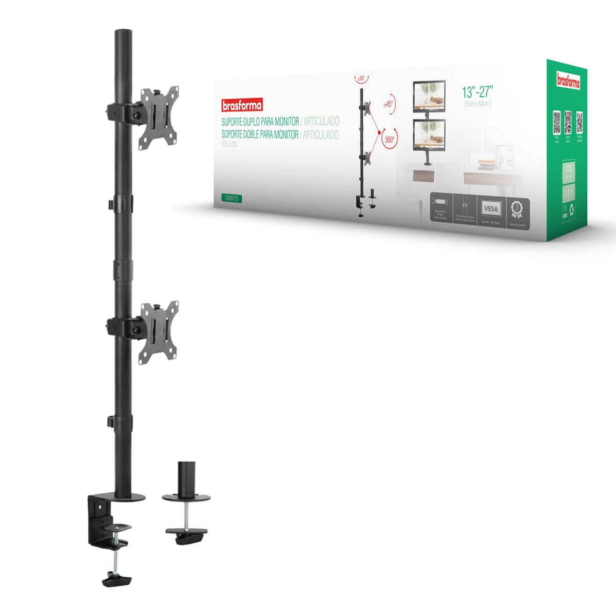 Suporte Articulado para 2 Monitores LED e LCD de 13″ a 27” – Brasforma SBRM725