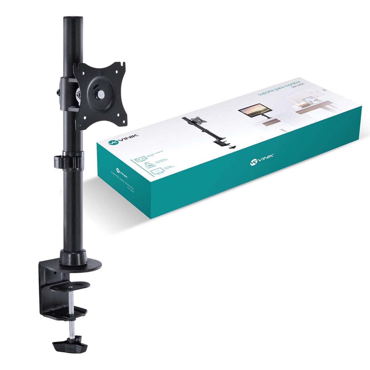 O suporte para monitor SM-340A da Vinik foi projetado para suportar monitores de 13 "a 27". Sua capacidade de peso é de 8 kg, podendo girar em 360 °, o que permite a visualização em retrato e paisagem.
