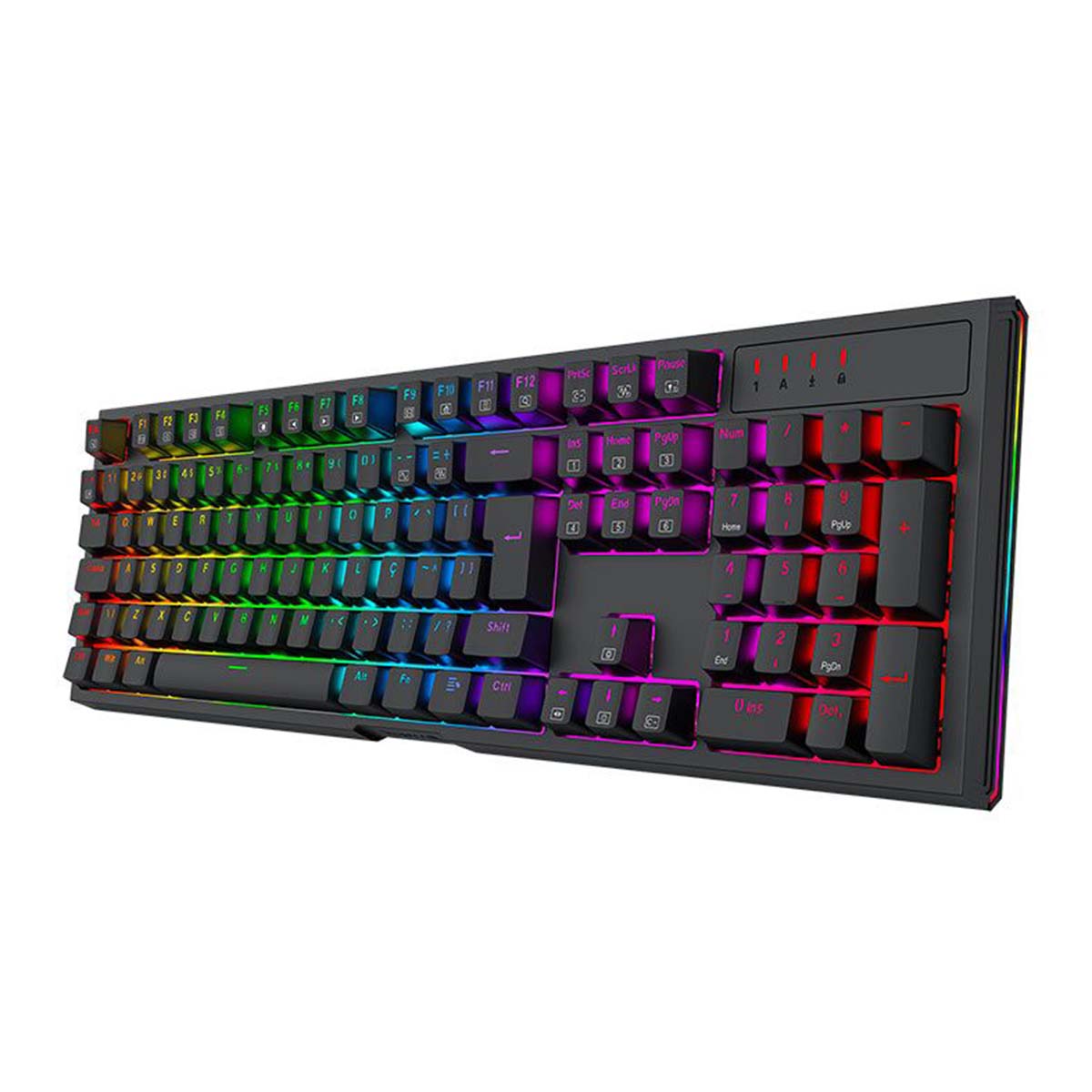 O Redragon Argo adota o formato **full size**, perfeito para aqueles que não abrem mão do teclado numérico. Este design inclui todas as teclas padrão, além do bloco numérico lateral, essencial para tarefas que requerem frequente entrada de números, como em planilhas e cálculos.