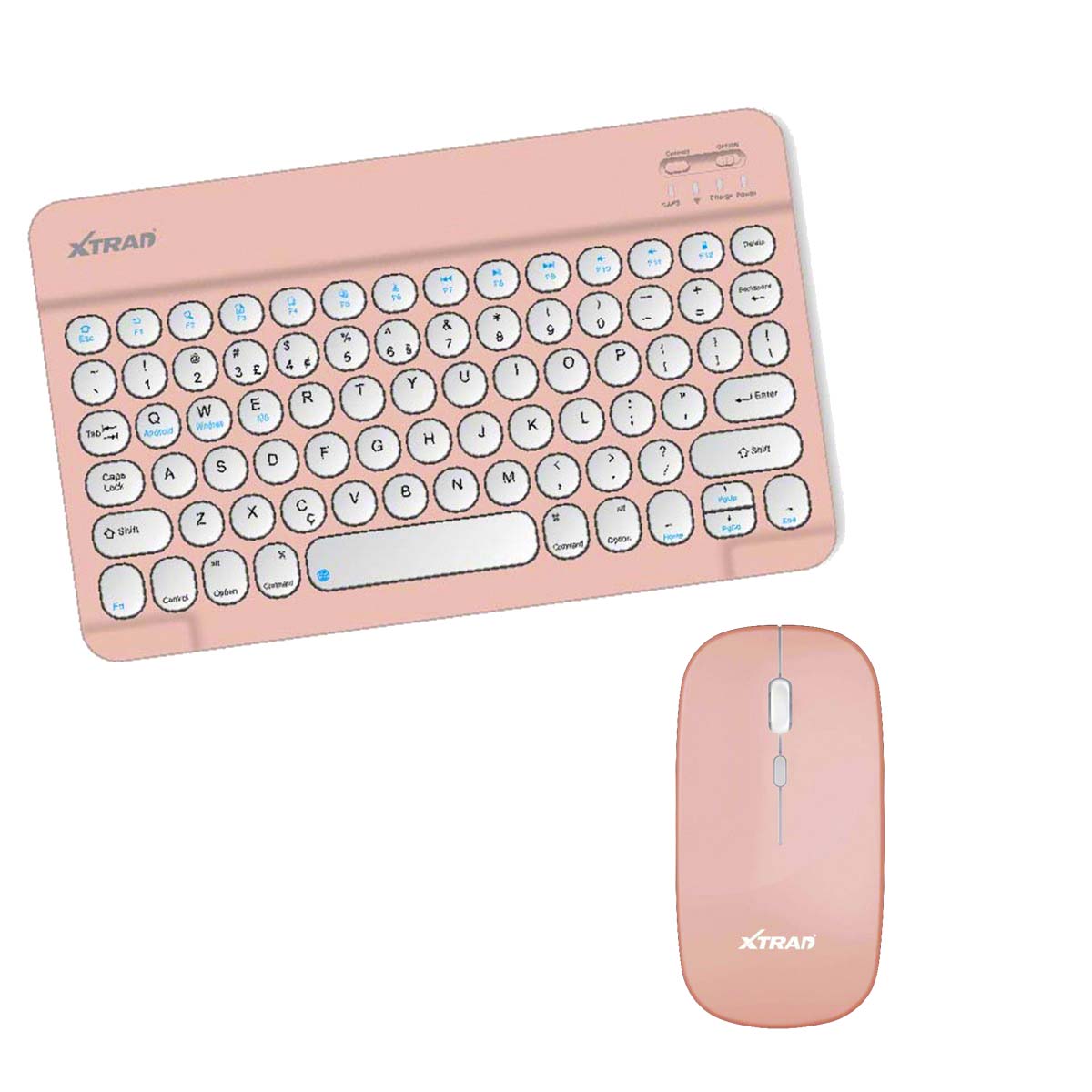 Teclado Mouse Bluetooth Slim Compatível Samsung Tablet Rosa