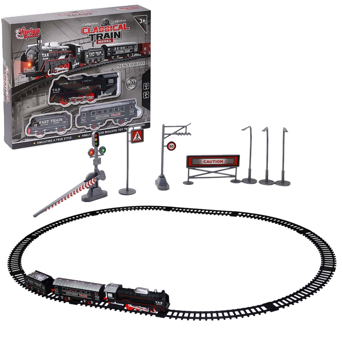 As crianças vão se encantar com o **Conjunto de Trem Clássico**, que traz 20 peças emocionantes, com sons e luzes que tornam a brincadeira ainda mais divertida! Prepare-se para uma aventura ferroviária inesquecível!